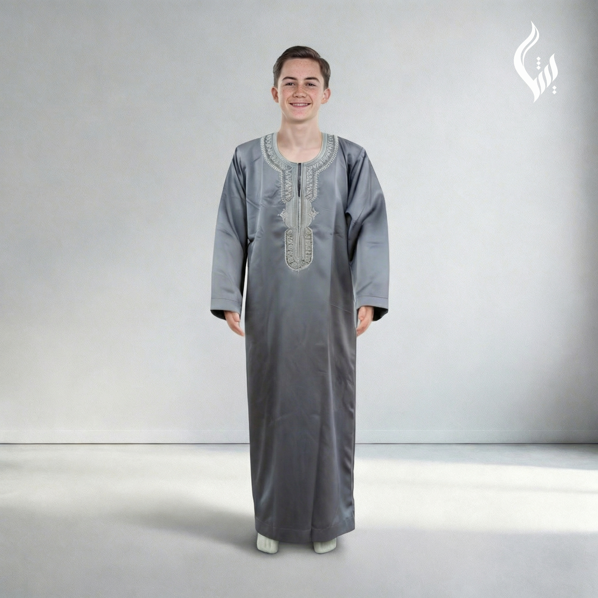 Moroccan Full Sleeve Thobe for Kids – Light Embroidery Eid Wear